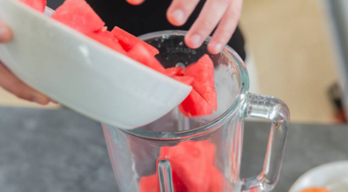 - Triturar: Coloca los tomates, el pimiento, el ajo y la sandía en una batidora y tritura hasta obtener una mezcla homogénea.