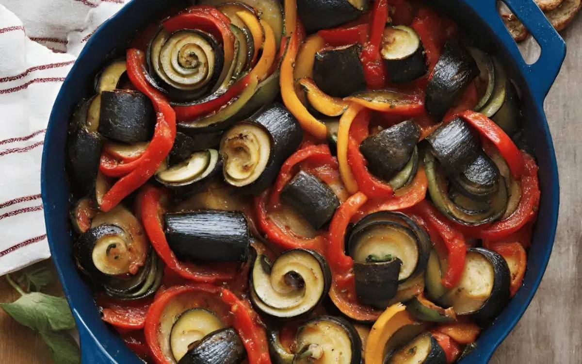 - Ratatouille al horno: Las verduras se cortan en rodajas finas y se hornean, a menudo presentadas de manera artística.