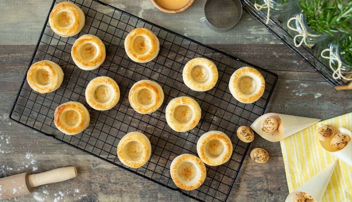 - Enfriar: Deja enfriar los volovanes en una rejilla antes de rellenar.